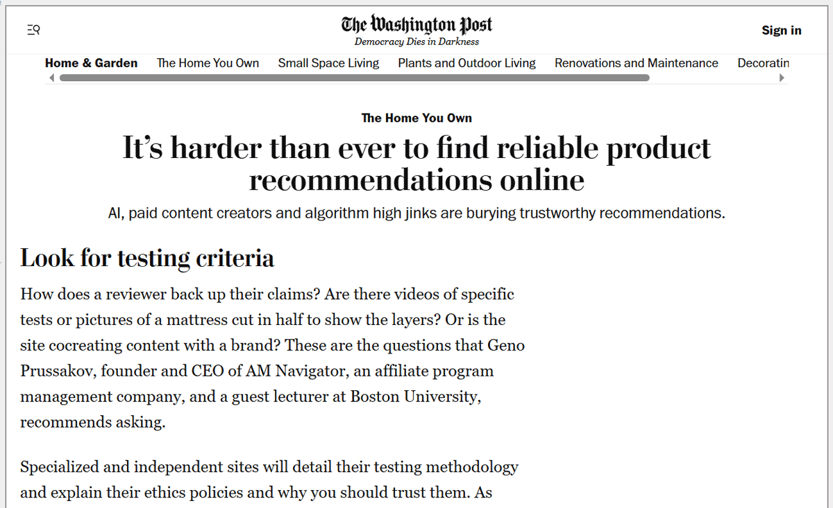 Earlier this year, when The Washington Post reached out for my input on how to treat online product recommendation lists published by big media, I had a lot to say. My thoughts ultimately appeared in the article boiled down to this:
